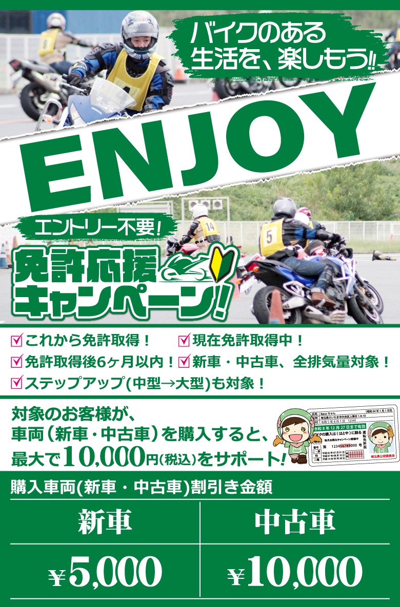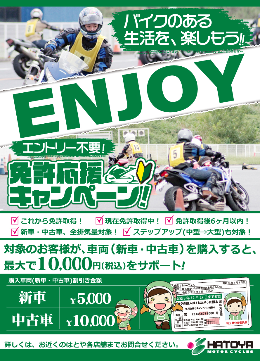 免許応援キャンペーン! | 中古バイクなら「はとや (HATOYA)」