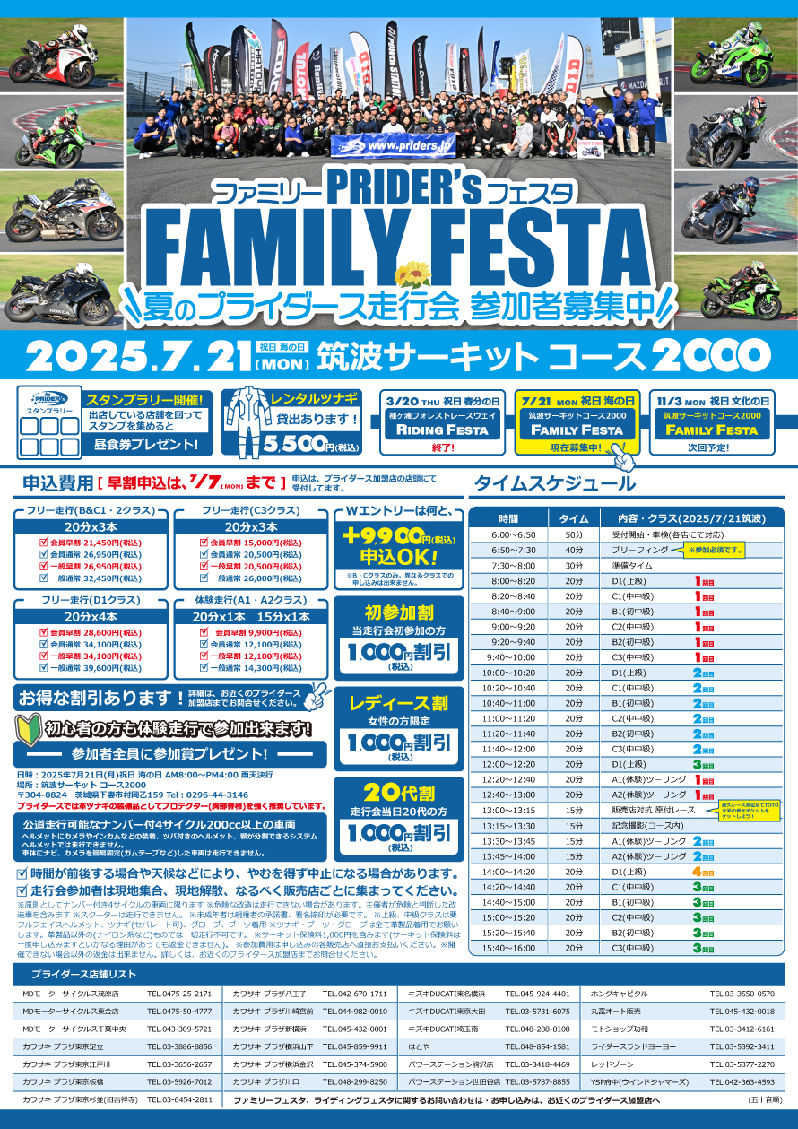 【夏のプライダース走行会】ファミリーフェスタ筑波サーキット2000 | 中古バイクなら「はとや (HATOYA)」