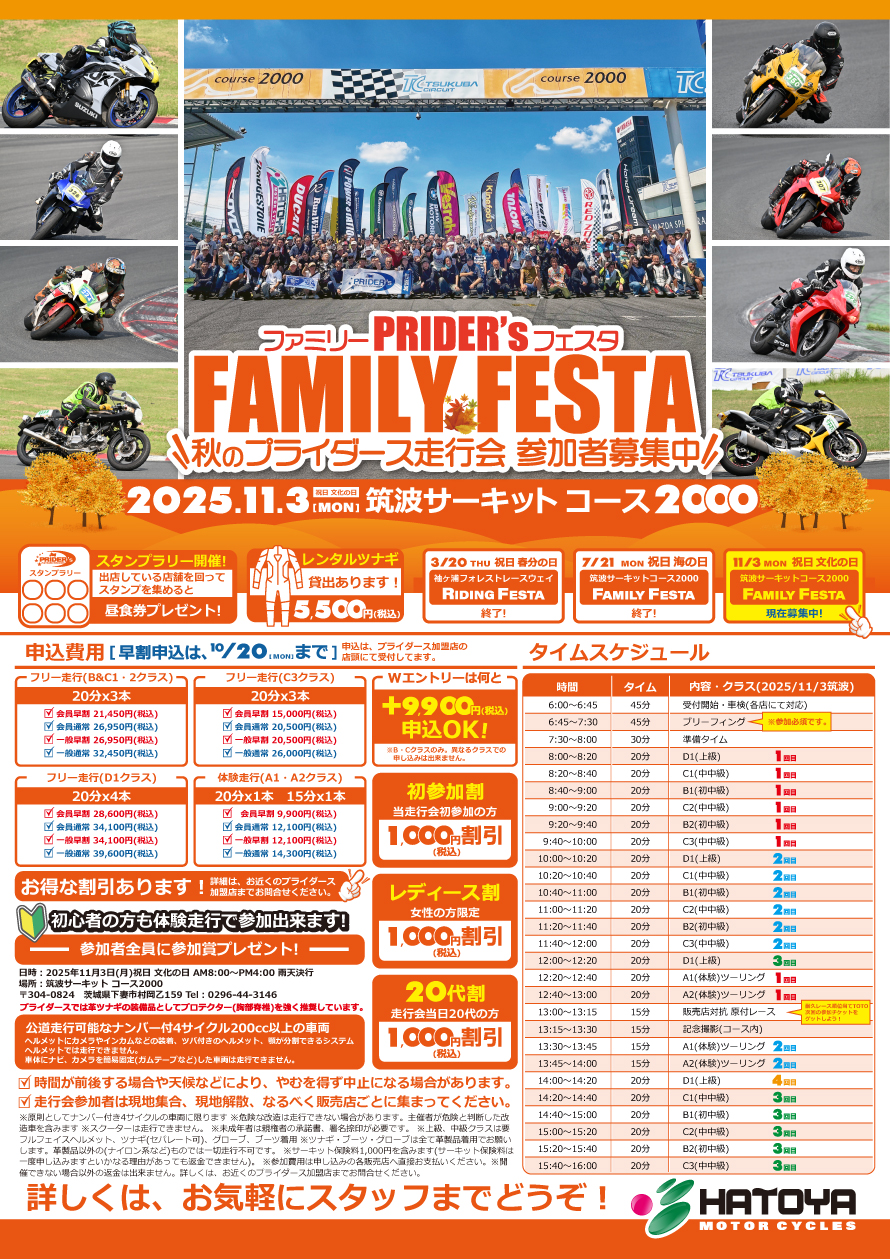 【秋のプライダース走行会】ファミリーフェスタ筑波サーキット2000 | 中古バイクなら「はとや (HATOYA)」