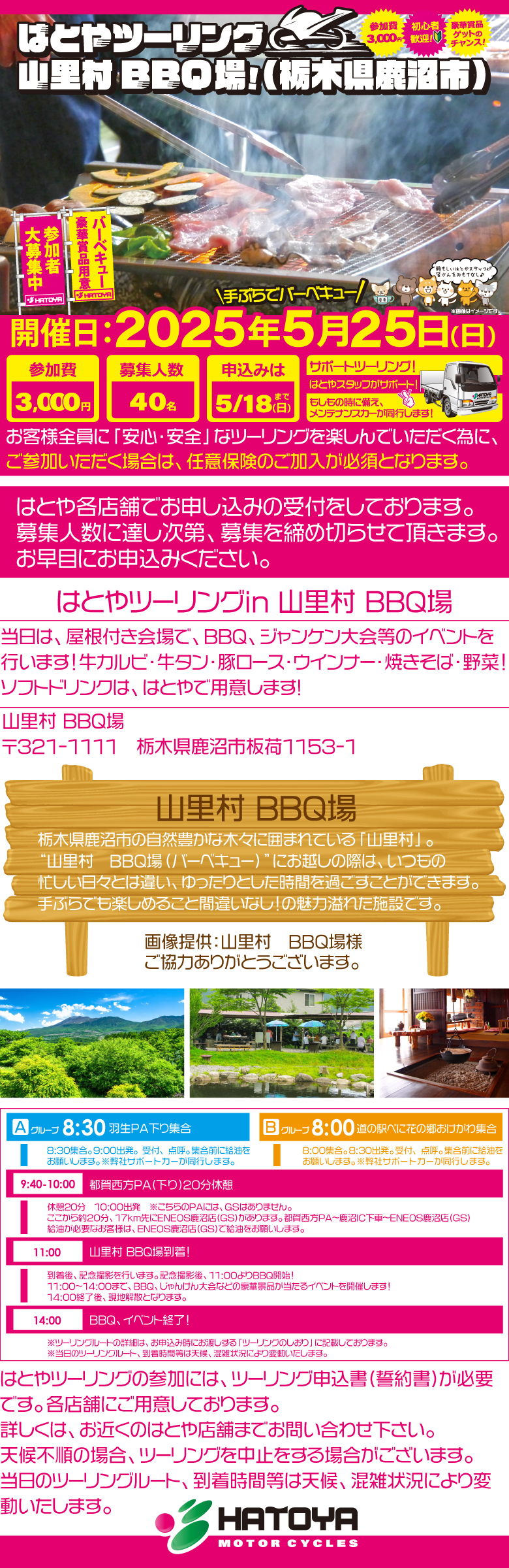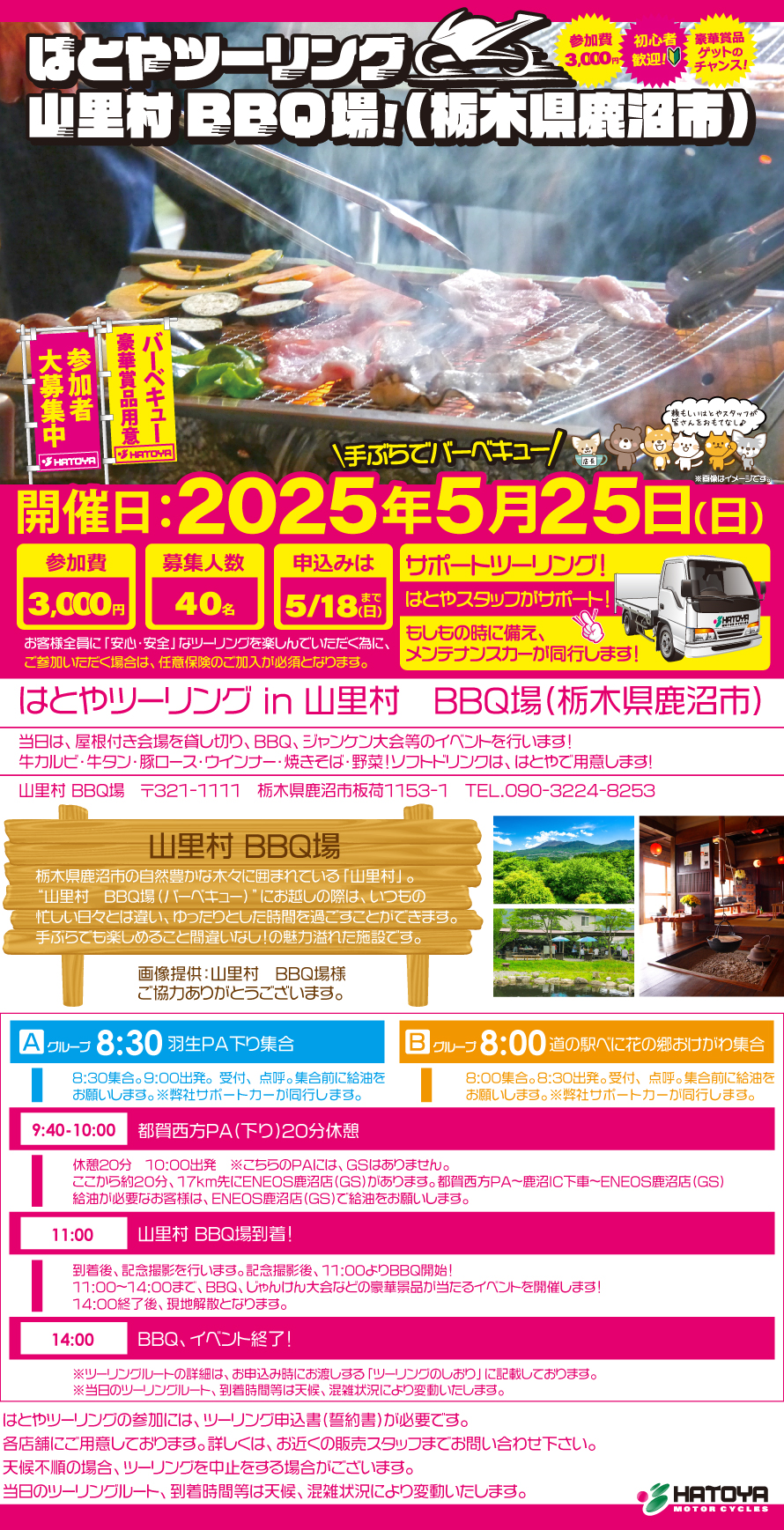 はとやツーリングin山里村 BBQ場!は、株式会社はとやが主催するツーリングです。