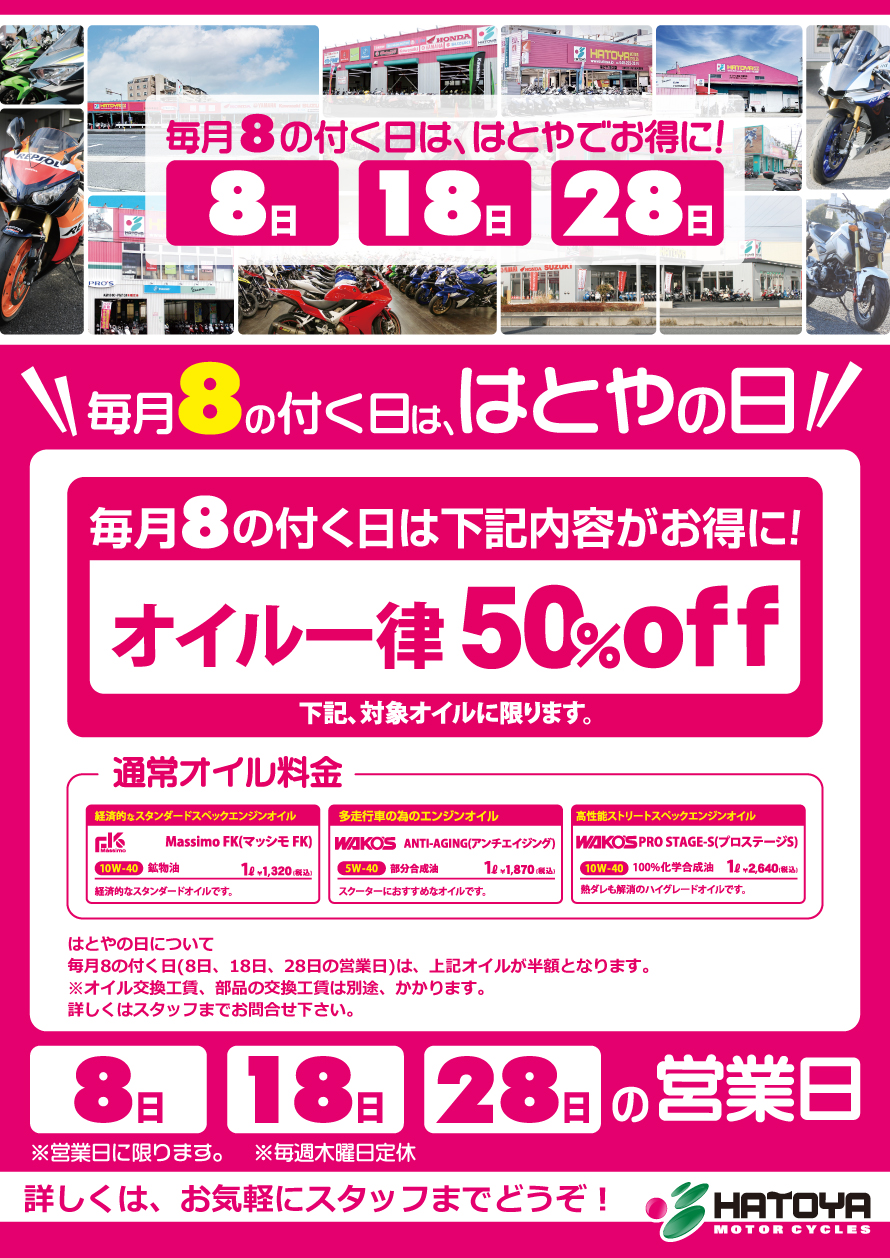 毎月8日、18日、28日は、はとやの日! | 中古バイクなら「はとや (HATOYA)」