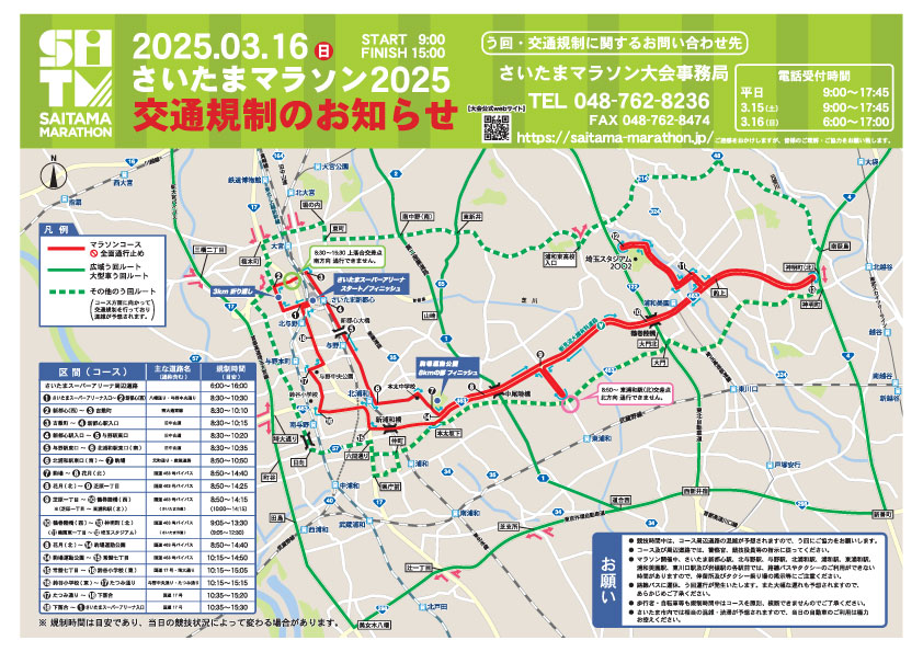 さいたまマラソン開催のため、はとや与野店前の国道17号線に交通規制がかかります。 日時 2025年3月16日(日) 時間 10:35〜15:30(予定) ※当日の状況によって交通規制の時間は変更となる場合がございます。 >交通規制 – さいたまマラソン【公式】https://saitama-marathon.jp/about/traffic/ お客様には大変ご迷惑をお掛けしますが、よろしくお願い致します。