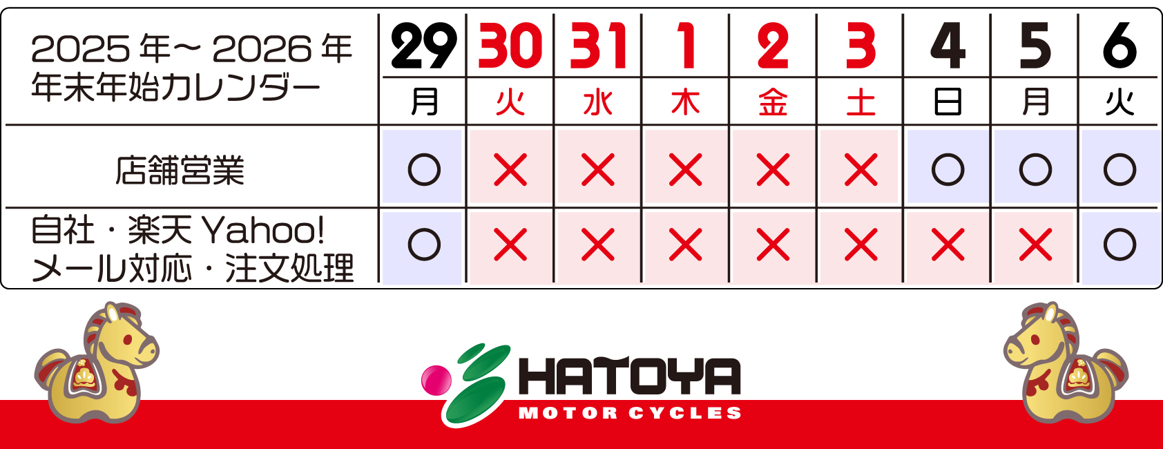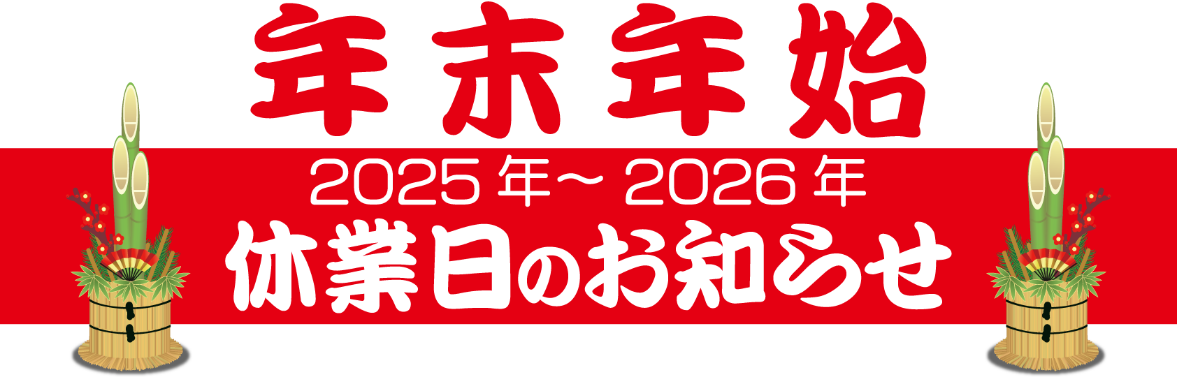 お客様各位 日頃よりご愛顧賜り誠にありがとうございます。 誠に勝手ながら、12月30日(火)~1月3日(土)までの間、冬季休業とさせて頂きます。 冬季休業期間中に頂いた自社サイト、Yahoo!ショッピング、楽天からのお問い合わせの返信、ご注文処理については2026年1月6(火)より順次対応いたします。 お客様にはご不便をお掛け致しますが、何卒よろしくお願い致します。